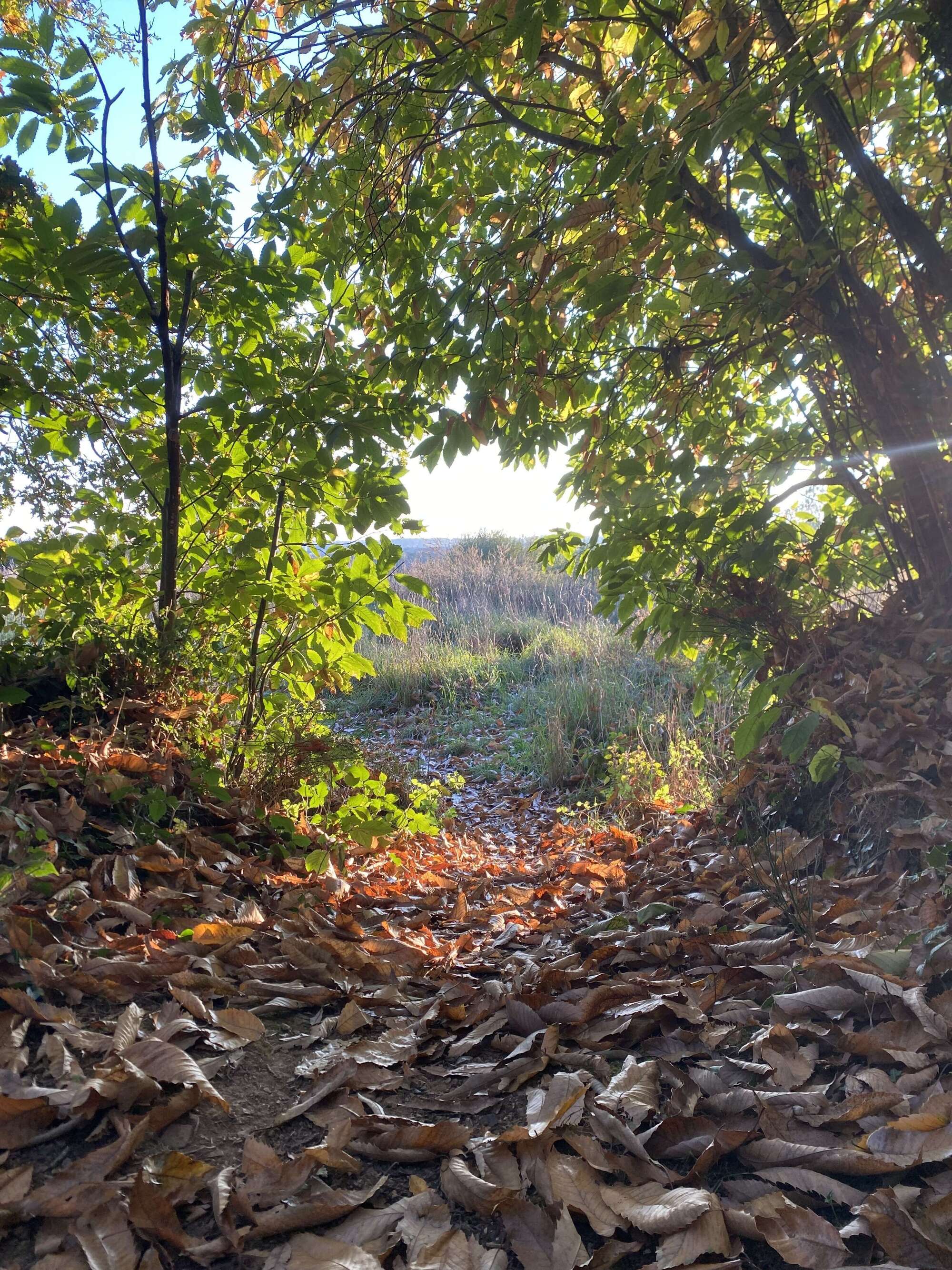 Marcher dans les feuilles, écouter leurs craquements sous mes pas, observer les nuances dorées de cette fin de journée, et ce soleil qui magnifie l’ensemble de ce décor.